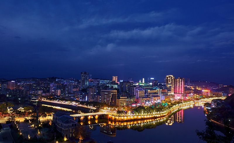半城青山半城楼 彩灯辉映碧水流